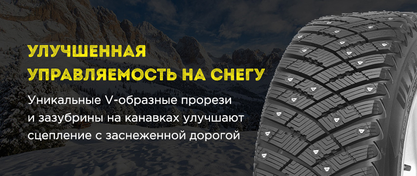 Зимняя шипованная шина GOODYEAR ULTRAGRIP ICE ARCTIC - один из самых узнаваемых рисунков протектора в мире сочетается в шине с целым рядом инновационных технических решений.