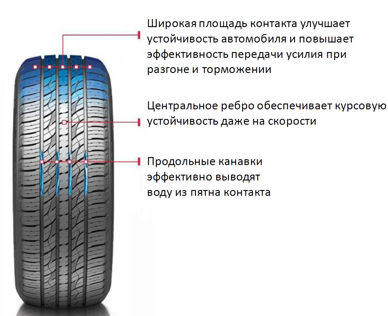 - Плечевые зоны имеют округленный профиль, который уменьшает деформацию протектора при нагрузке. Это помогает сохранить точность рулевого управления и делает поведение автомобиля более предсказуемым.